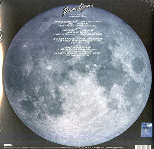 Edición en formato vinilo de “Future nostalgia (the Moonlight Edition)", una nueva edición del exitoso álbum de Dua Lipa “Future nostalgia”. esta nueva edición contiene 4 temas nuevos entre los que se encuentra su single “We’re Good” e incluye, además, las colaboraciones con Miley Cyrus, "Prisoner"; con J. Balvin, Bad Bunny y tainy, "un día (One Day)"; y con angèle, "Fever".